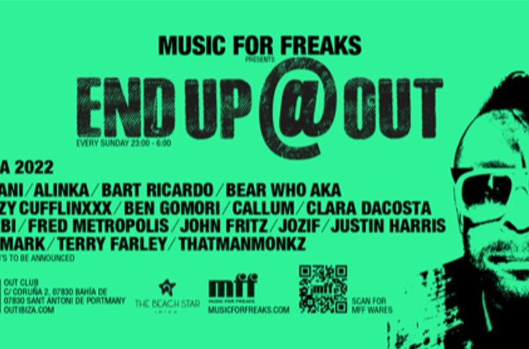 L’Out è aperto 4 giorni a settimana, e tutte le domeniche presenta End Up la festa organizzata da Justin Harris, alias Freak; il quale porta sulla White Island la scuderia della sua storica house label londinese, Music for Freaks. Oltre vent’anni fa Harris ed il suo socio Luke Solomon fondarono MFF per autoprodurre i propri lavori, ma nel tempo invece ci sono state collaborazioni e produzioni con artisti come Derrik Carter, Luciano, Villalobos, Honey Dijon e Zoo Brasil.